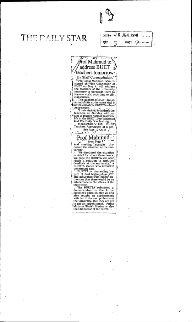 Prof mahmud to address buet teachers tomorrow Published on Newspaper The Daily Star Category Professional Education Professional Education Engineering Download