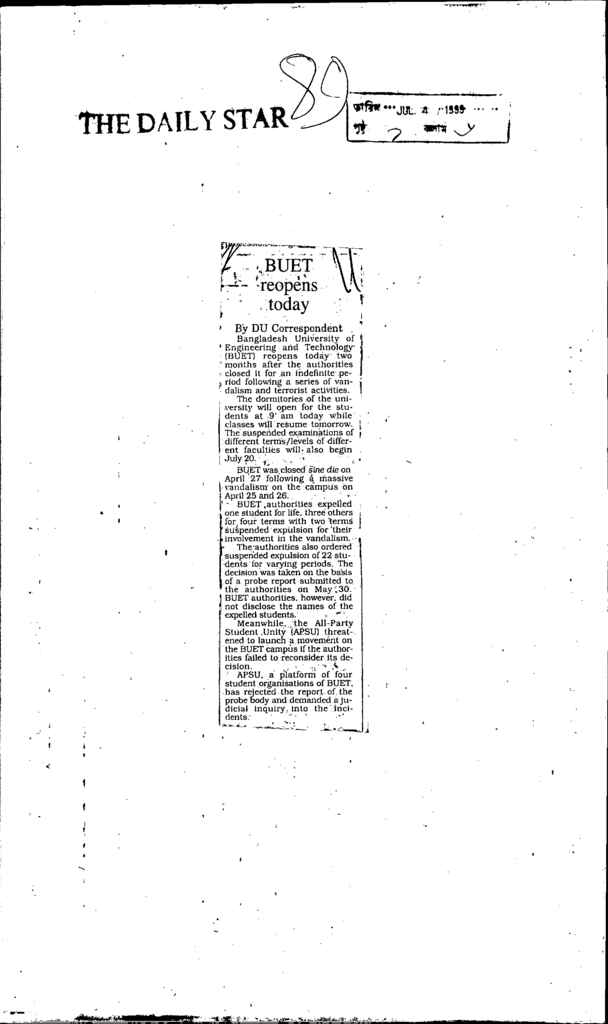 Buet reopens today Published on Newspaper The Daily Star Category Professional Education Professional Education Engineering Download