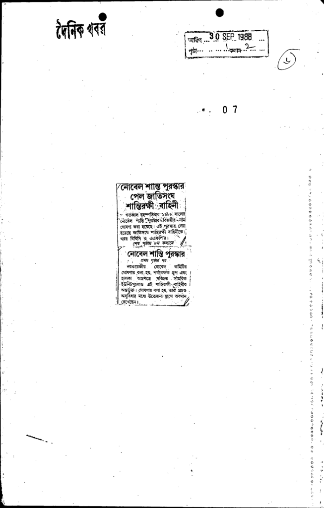 নোবেল শান্তি পুরস্কার পেল জাতিসংঘ শান্তিরক্ষী বাহিনী Published on Newspaper দৈনিক খবর Category Education Policy / Education Commission Download