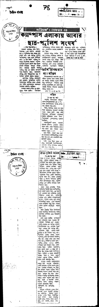 ক্যাম্পাস এলাকায় আবার চাত্র পুলিশ সংঘর্ষ Published on Newspaper দৈনিক বাংলা Category Campus Terrorism Download