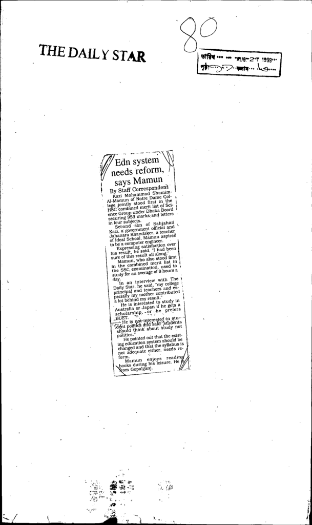 Edn system needs reform,says mamun Published on Newspaper The Daily Star Category Personal Opinion / Discussion / Commentary Personal Speech / Discussion / Comentary Secondary and Higher Secondary Education Download