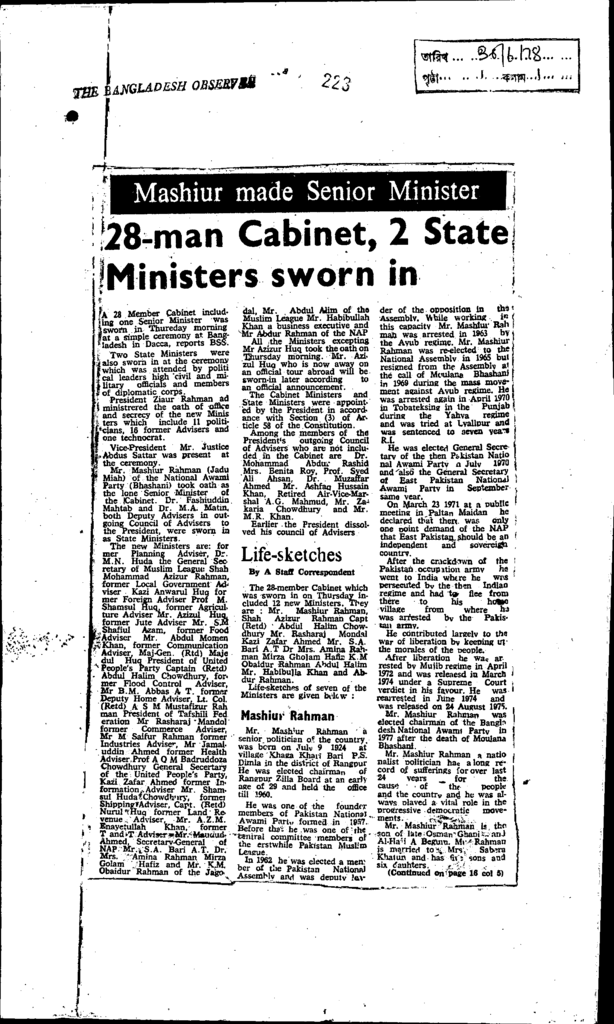 28-man cabinet,2 state ministers sworn in Published on Newspaper The Bangladesh Observer Category General Education Download