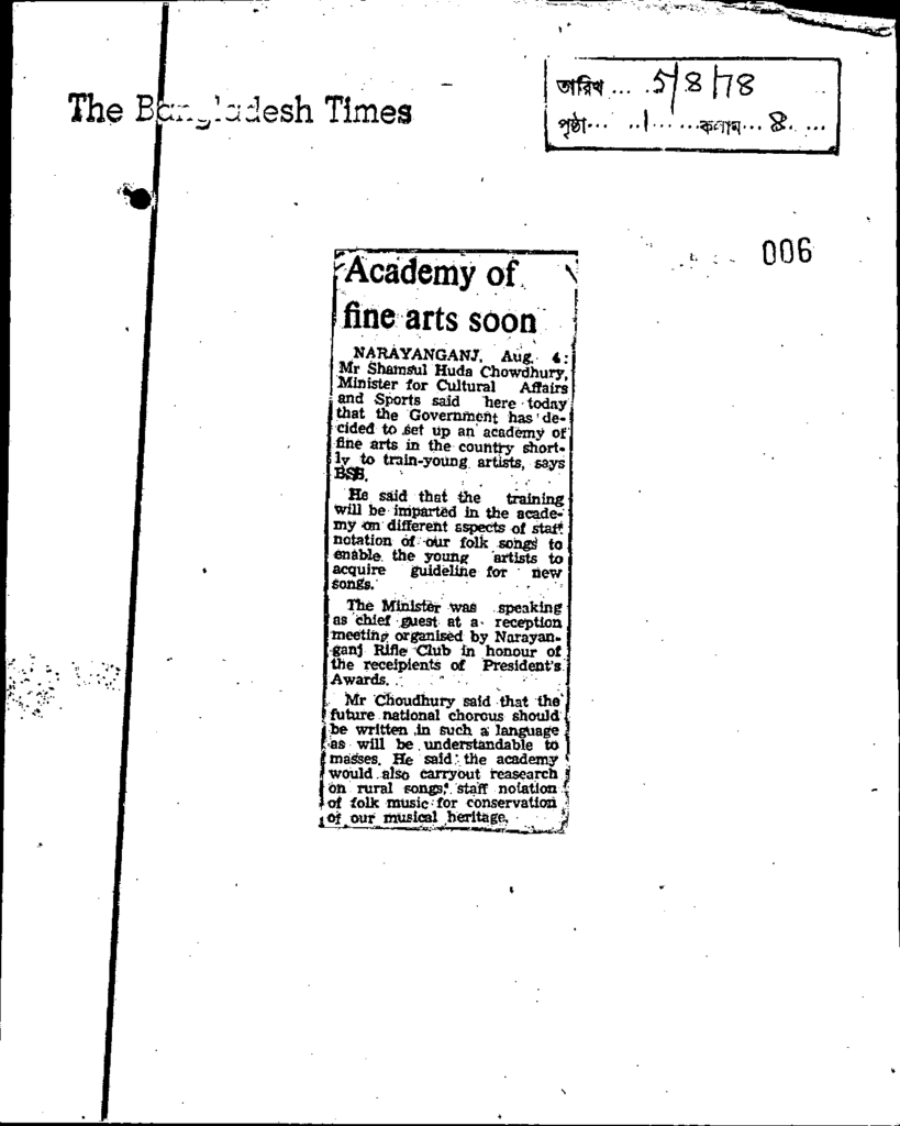 Academy of fine arts soon Published on Newspaper The Bangladesh Times Category General Education Download