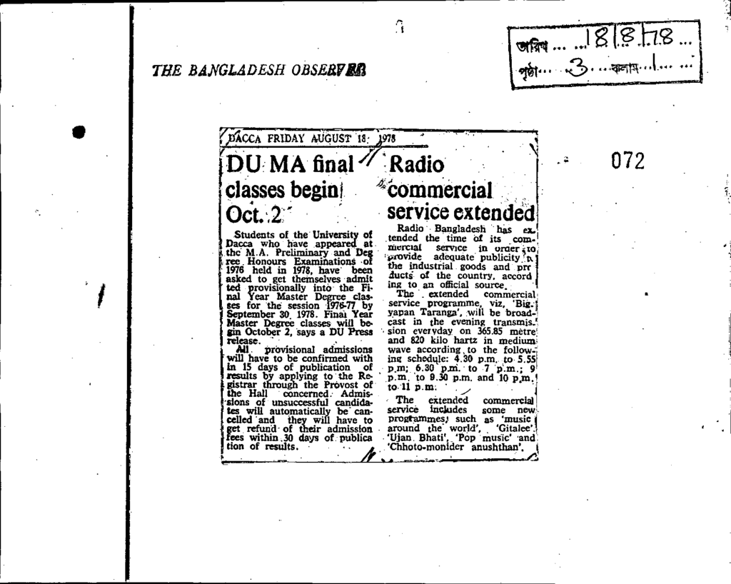Du m a dinal class begin oct 2 Published on Newspaper The Bangladesh Observer Category General Education Download