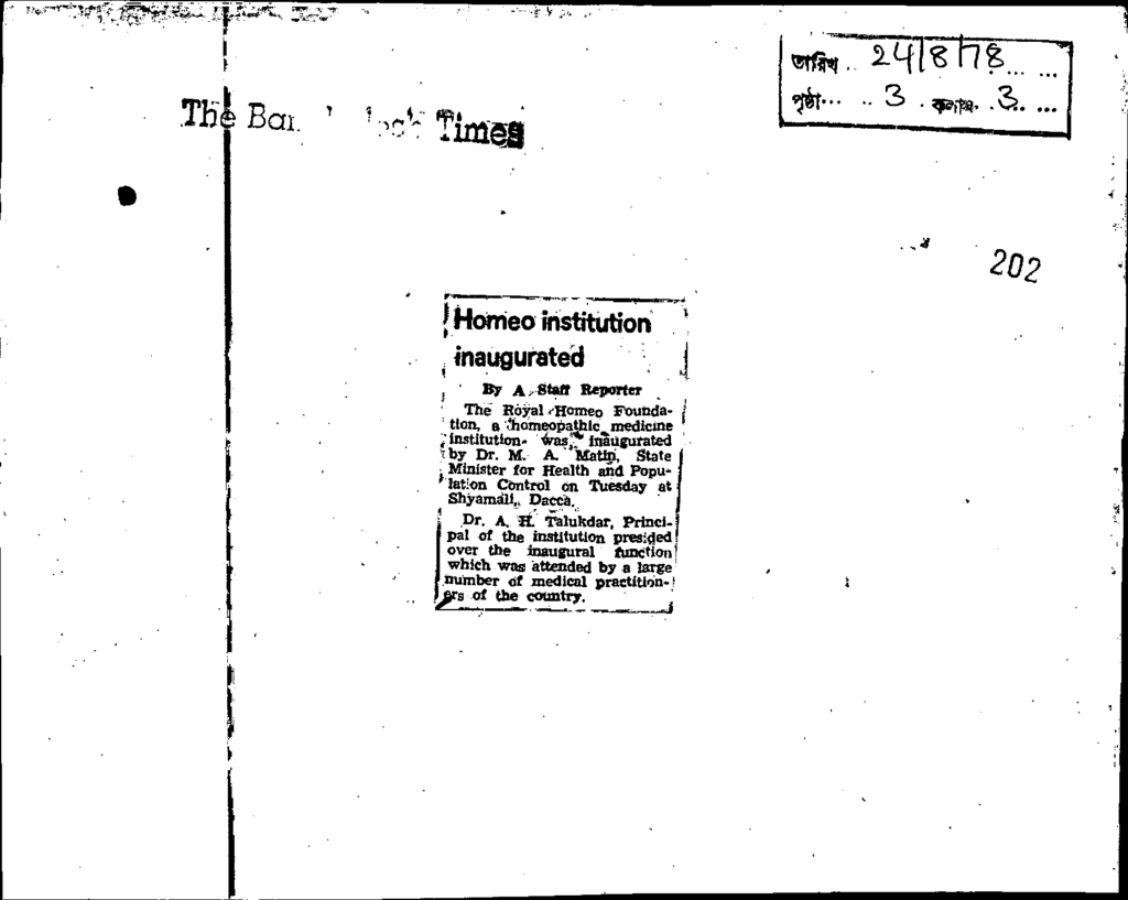 Homeo institution inaugurated Published on Newspaper The Bangladesh Times Category General Education Download