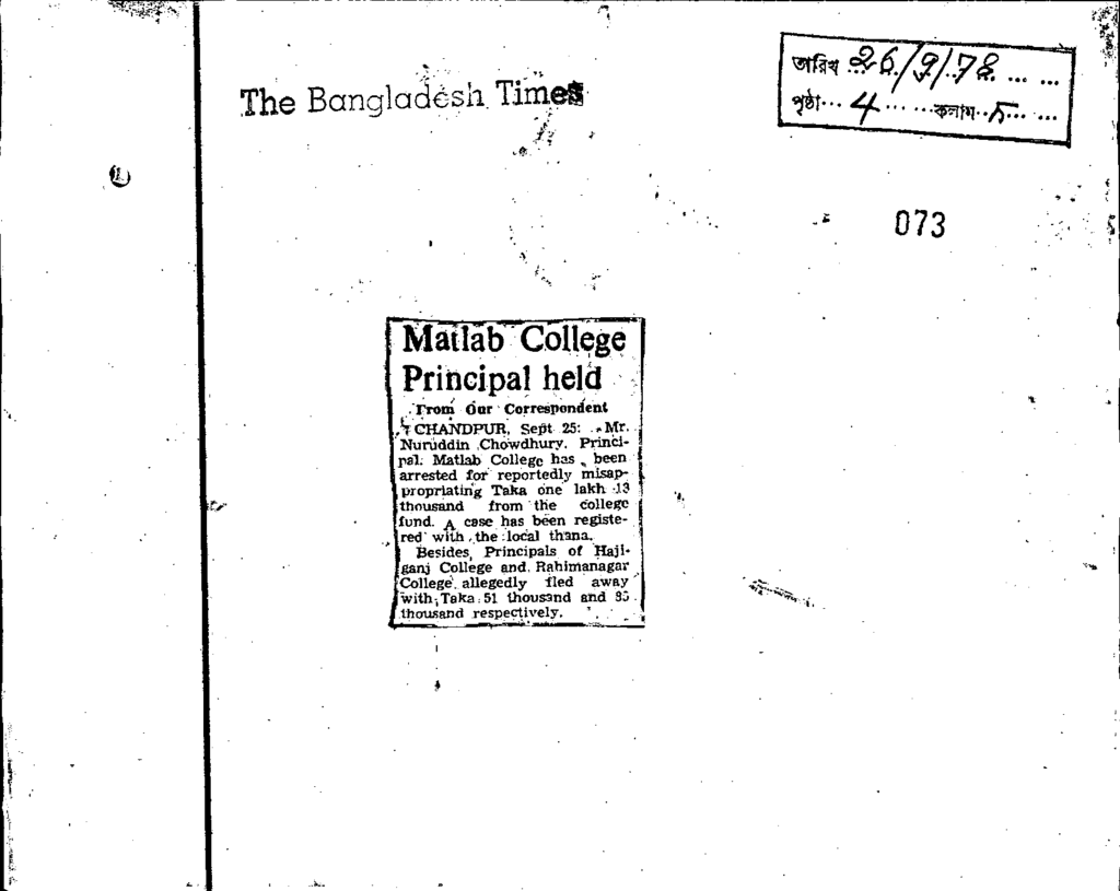 Matlab college principle held Published on Newspaper The Bangladesh Times Category General Education Download