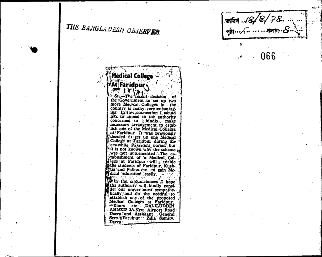 Medical college at faridpur Published on Newspaper The Bangladesh Observer Category General Education Download