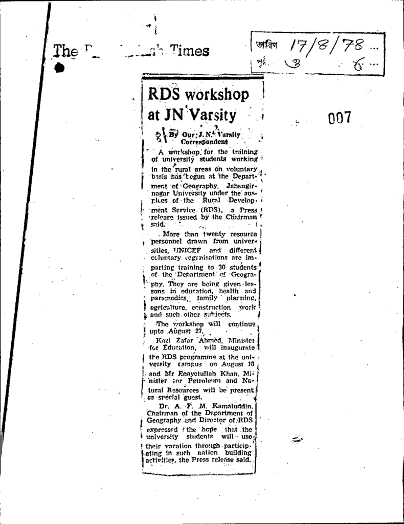 Rds workshop at jn'varsity Published on Newspaper The Bangladesh Times Category General Education Download