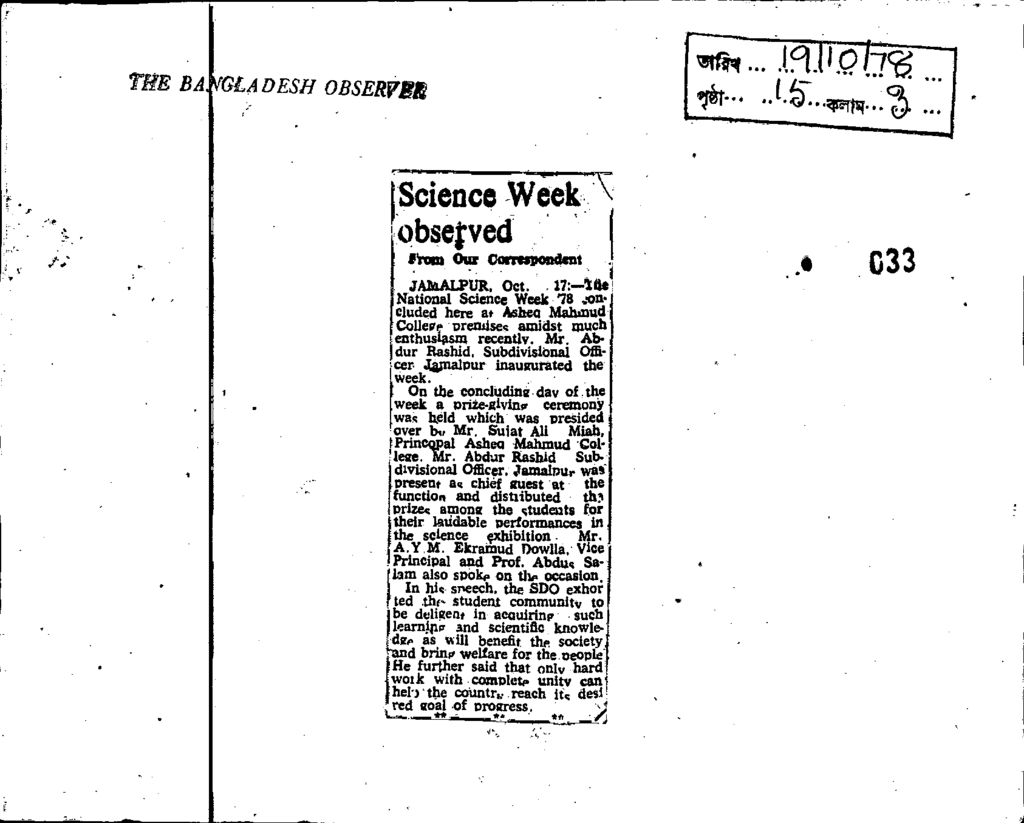 Science week obsetved Published on Newspaper The Bangladesh Observer Category General Education Download