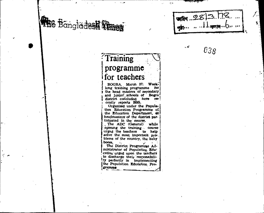 Training programme for teachers Published on Newspaper The Bangladesh Times Category General Education Download