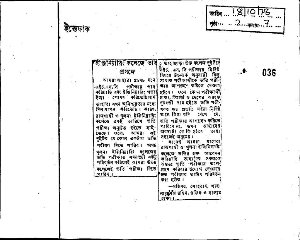 ইঞ্জিনিয়ারিং কলেজে ভর্তি প্রসঙ্গে