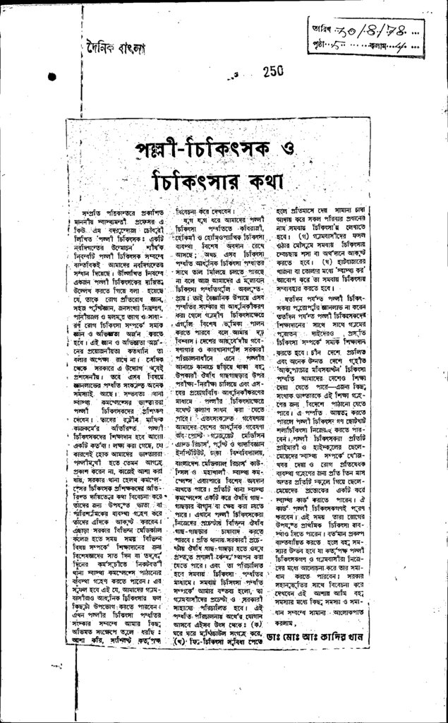 পল্লী চিকিৎসক ও চিকিৎসার কথা