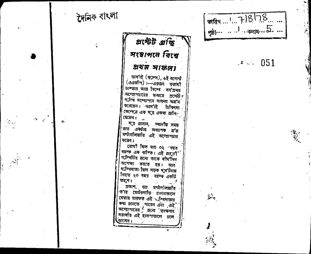 প্রস্টেট গ্রন্থি সংস্থাপন বিশ্বে প্রথম সাফল্য Published on Newspaper দৈনিক বাংলা Category General Education Download