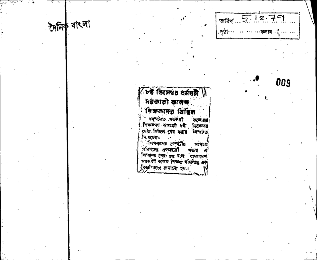 ৮ই ডিসেম্বর ধর্মঘটি সরকারী কলেজ শিক্ষকদের মিছিল Published on Newspaper দৈনিক বাংলা Category General Education Download