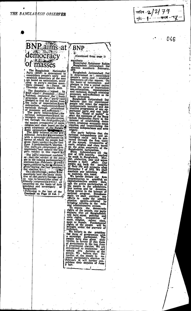 Bnp aims at democracy of masses Published on Newspaper The Bangladesh Observer Category General Education Download