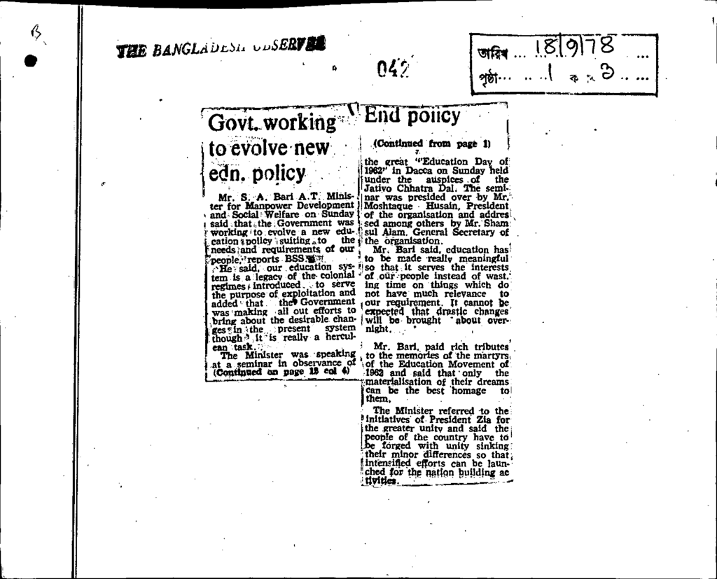Govt.working to evolove new edn policy Published on Newspaper The Bangladesh Observer Category General Education Download