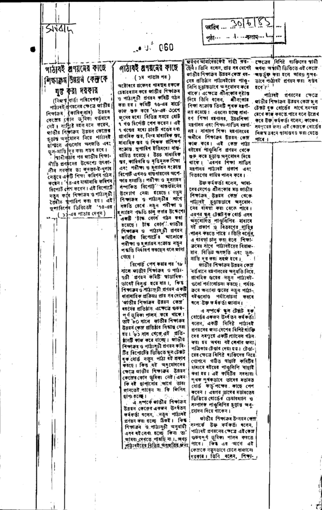 পাঠ্যবই প্রণয়নের কাজে শিক্ষাক্রম উন্নয়ন কেন্দ্রকে যুক্ত করা দরকার Published on Newspaper দৈনিক সংবাদ Category Admission / Seat Problem Download