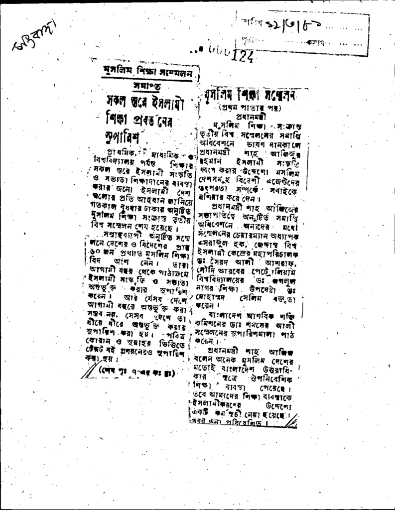মুসলিম শিক্ষা সম্মেলনের সমাপ্ত : সকল স্তরে ইসলামী শিক্ষা প্রবর্তনের সুপারিশ Published on Newspaper দৈনিক সংবাদ Category General Education Download
