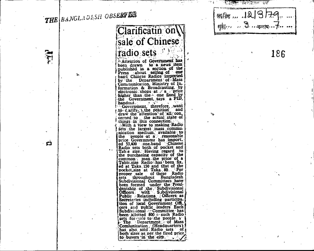 Clarification on sale of chinese radio sets Published on Newspaper The Bangladesh Observer Category General Education Download