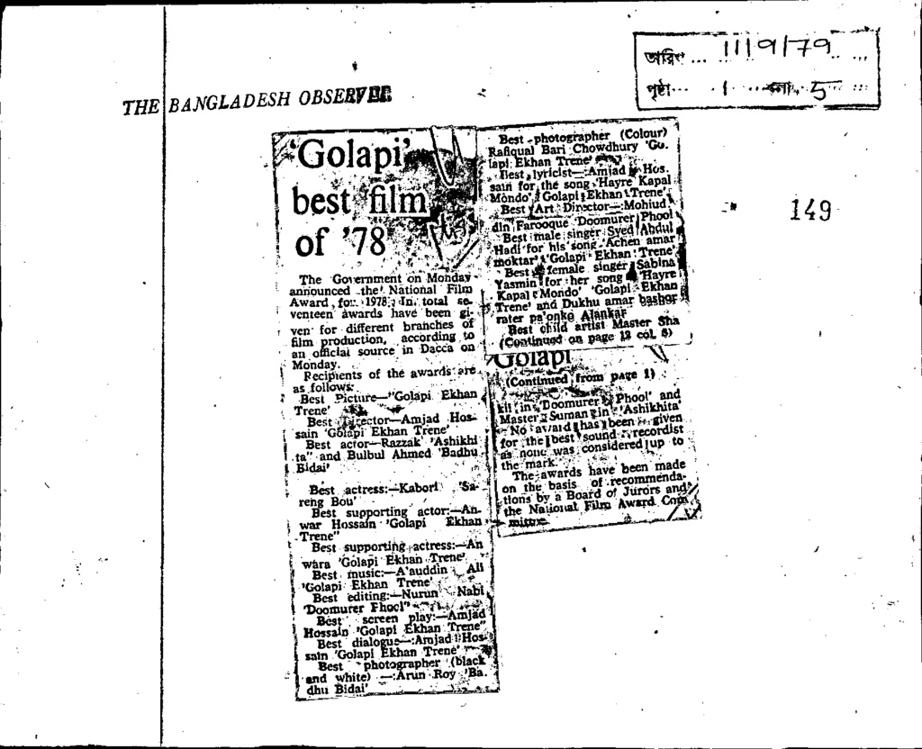 Golapi' best film of'78 Published on Newspaper The Bangladesh Observer Category General Education Download