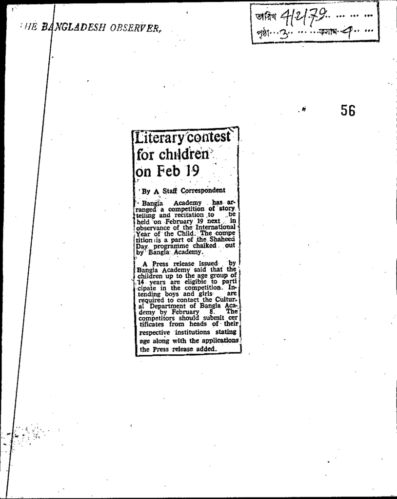 Literacy contest for children on feb 19 Published on Newspaper The Bangladesh Observer Category General Education Download