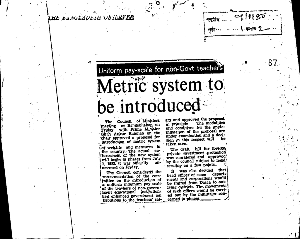 Metric system to be introduced Published on Newspaper The Bangladesh Observer Category General Education Download