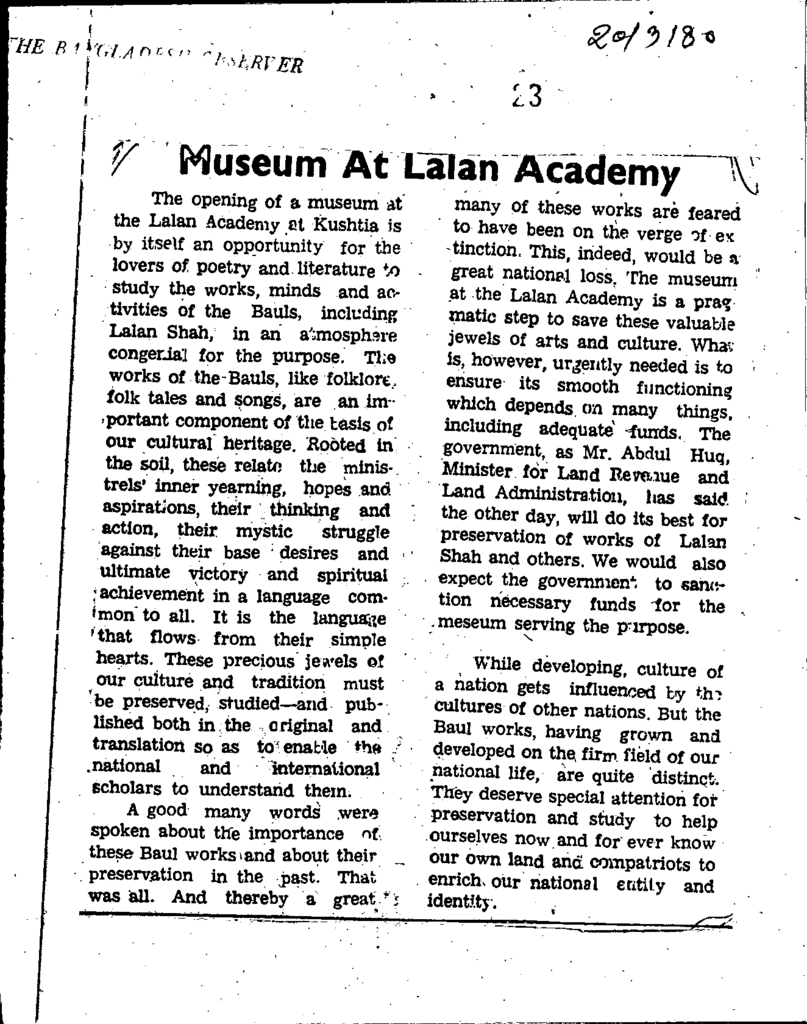 Museum at lalan academy Published on Newspaper The Bangladesh Observer Category General Education Download