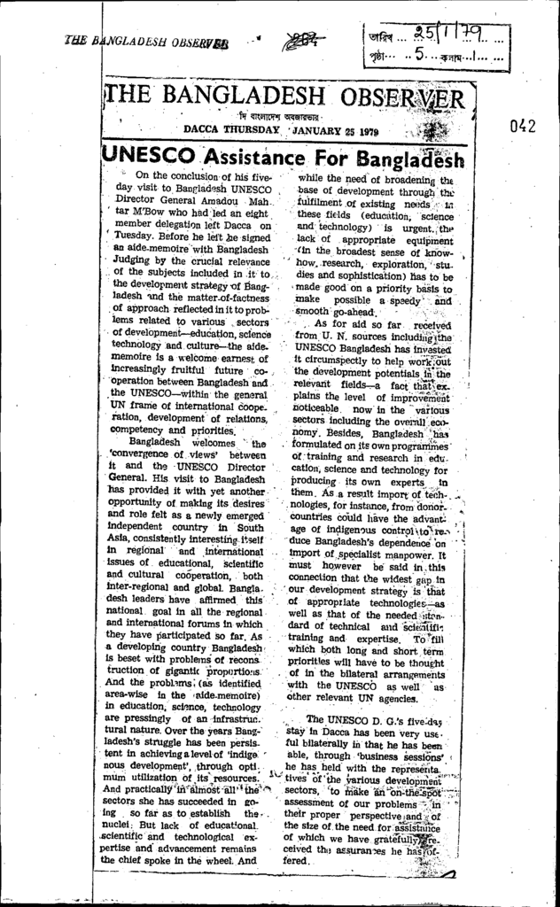Unesco assistance for bangladesh Published on Newspaper The Bangladesh Observer Category General Education Download