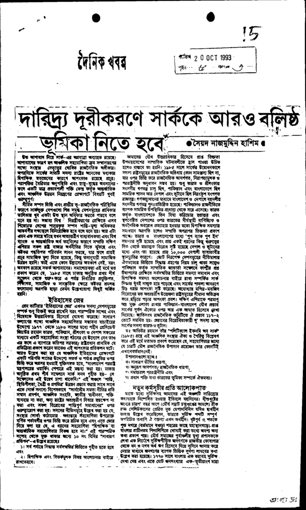 দারিদ্র দুরীকরনে সার্ককে আরও বলিষ্ঠ ভুমিকা নিতে হবে । Published on Newspaper দৈনিক খবর Category General Education Download