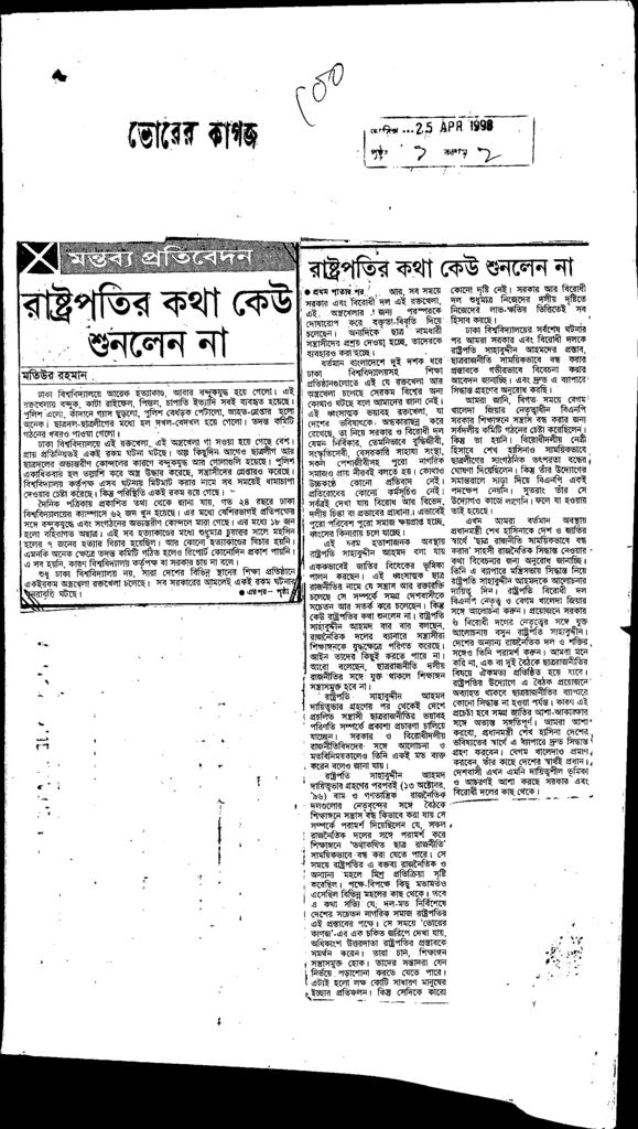 রাষ্ট্রপতির কথা কেই শুনলেন না Published on Newspaper দৈনিক ভোরের কাগজ Category General Education Download