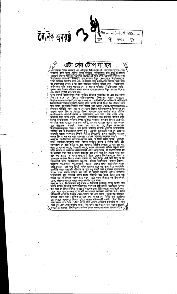 এটা যেন টোপ না হয় Published on Newspaper দৈনিক জনকণ্ঠ Category Personal Opinion / Discussion / Commentary Personal Speech / Discussion / Comentary Secondary and Higher Secondary Education Download