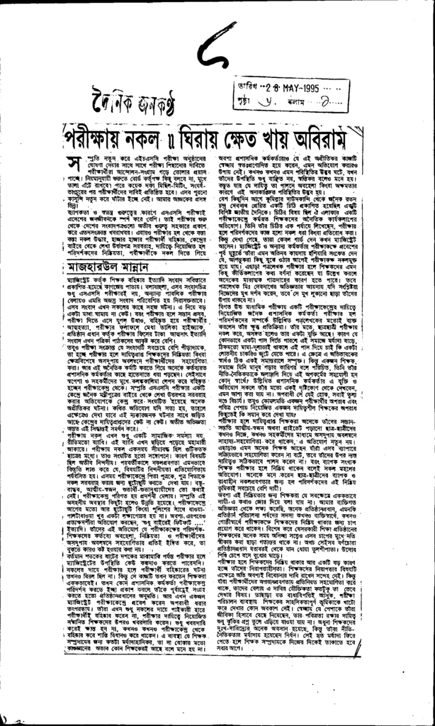 পরীক্ষায় নকল।। ঘিরায় ক্ষেত খায় অবিরাম Published on Newspaper দৈনিক জনকণ্ঠ Category Personal Opinion / Discussion / Commentary Personal Speech / Discussion / Comentary Secondary and Higher Secondary Education Download