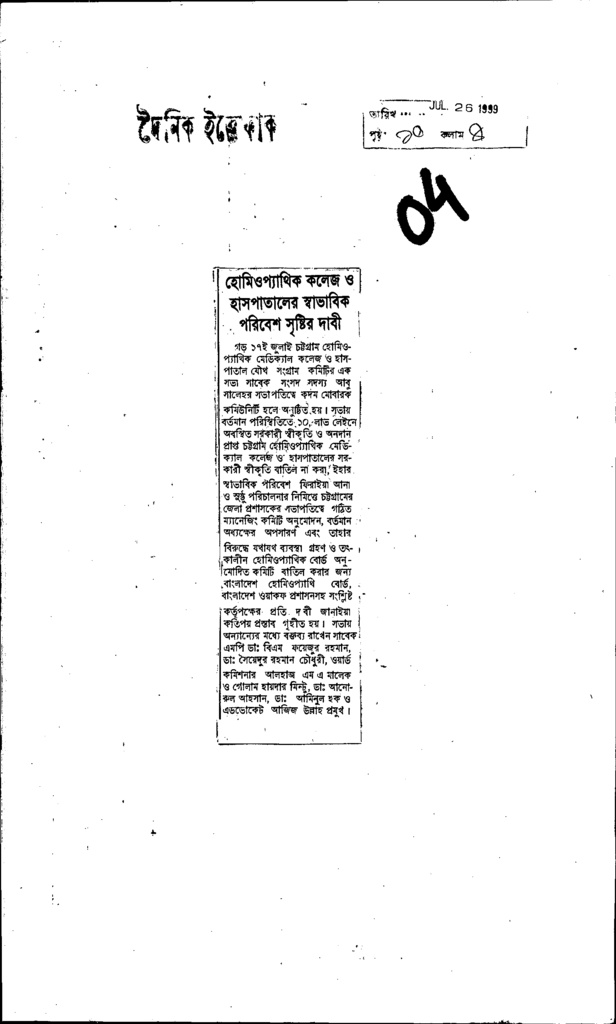 হোমিও প্যাথিক কলেজ ও হাসপাতালের স্বাভাবিক পরিবেশ সৃষ্টির দাবী Published on Newspaper দৈনিক ইত্তেফাক Category Professional Education Professional Education Medical Download
