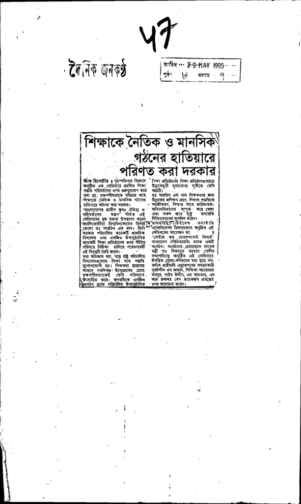 শিক্ষাকে নৈতিক ও মানসিক গঠনের হাতিয়ারে পরিণত করা দরকার Published on Newspaper দৈনিক জনকণ্ঠ Category Personal Opinion / Discussion / Commentary Personal Speech / Discussion / Comentary Secondary and Higher Secondary Education Download