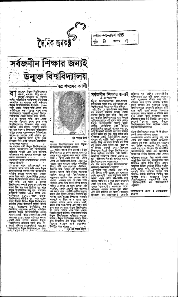 সর্বজনীন শিক্ষার জন্যই উন্মুক্ত বিশ্ববিদ্যালয় Published on Newspaper দৈনিক জনকণ্ঠ Category Personal Opinion / Discussion / Commentary Personal Speech / Discussion / Comentary Secondary and Higher Secondary Education Download