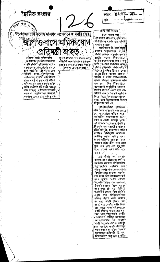 জীপ ও বাসে অগ্নি সংযোগ প্রতিমন্ত্রী আহত Published on Newspaper দৈনিক সংবাদ Category Campus Terrorism Download
