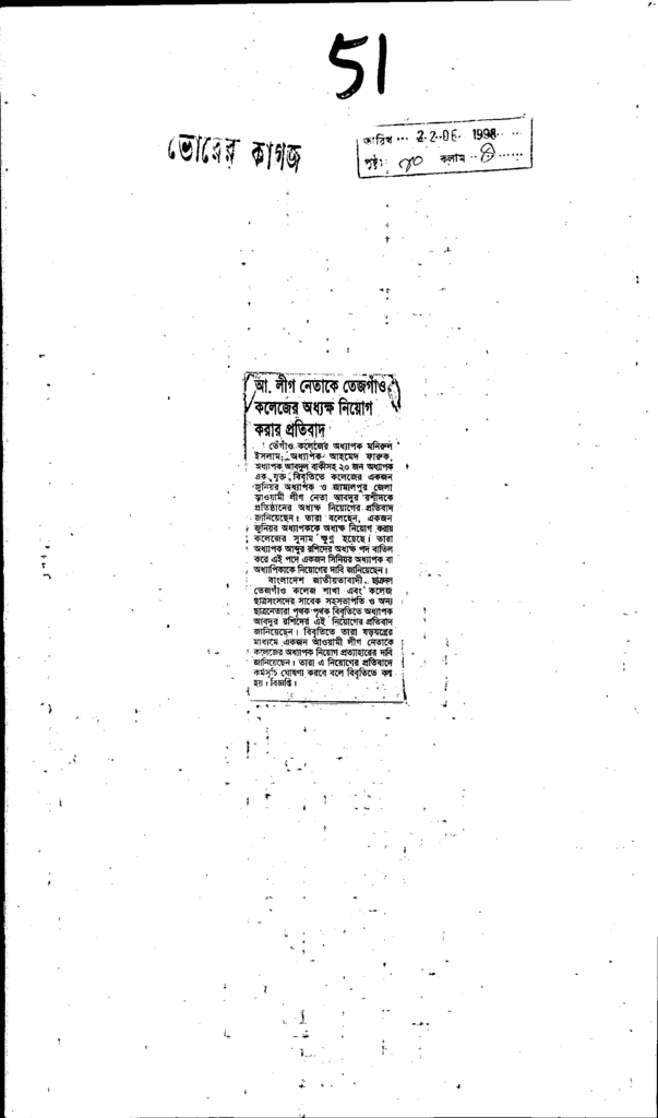 আ. লীগ নেতাকে তেজগাঁও কলেজের অধ্যক্ষ নিয়োগ করার প্রতিবাদ Published on Newspaper দৈনিক ভোরের কাগজ Category Professional Education Professional Education Others Download