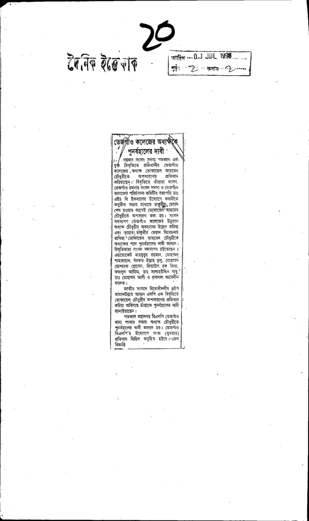 তেজগাঁও কলেজের অধ্যক্ষকে পূনর্বহালের দাবী Published on Newspaper দৈনিক ইত্তেফাক Category Professional Education Professional Education Others Download
