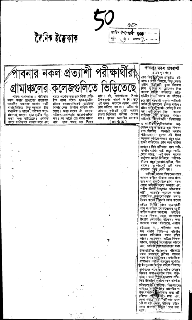 পাবনার নকল প্রত্যাশী পরীক্ষার্থীরা গ্রামাঞ্চলের কলেজগুলিতে ভিড়িতেছে Published on Newspaper দৈনিক ইত্তেফাক Category Professional Education Professional Education Others Download