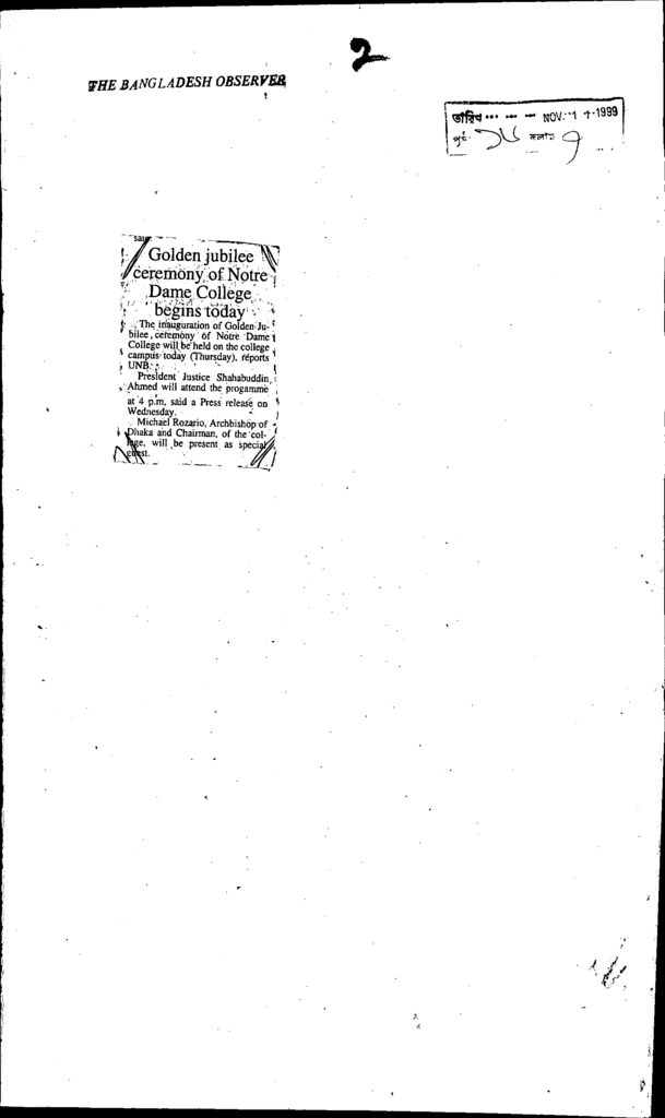 Golden jubilee ceremony of noter dame college begins today Published on Newspaper The Bangladesh Observer Category Professional Education Professional Education Others Download