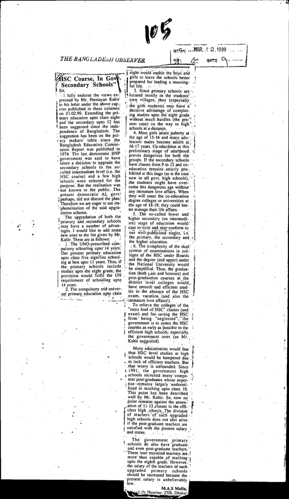 Hsc course, in govt secondary schools Published on Newspaper The Bangladesh Observer Category Professional Education Professional Education Others Download
