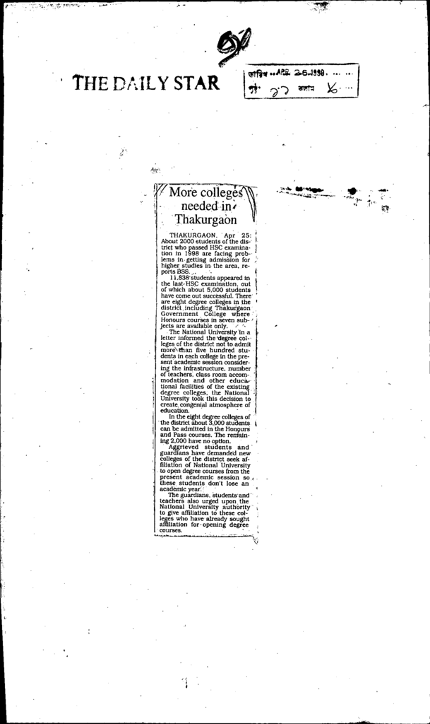 More colleges needed in thakurgaon Published on Newspaper The Daily Star Category Professional Education Professional Education Others Download