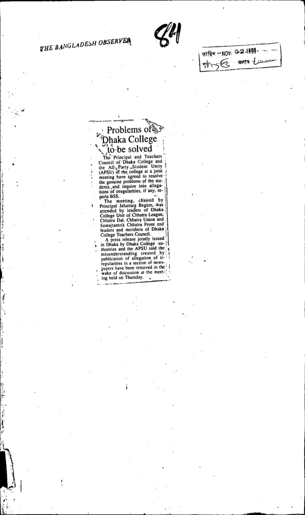 Problems of dhaka college to be solved Published on Newspaper The Bangladesh Observer Category Professional Education Professional Education Others Download