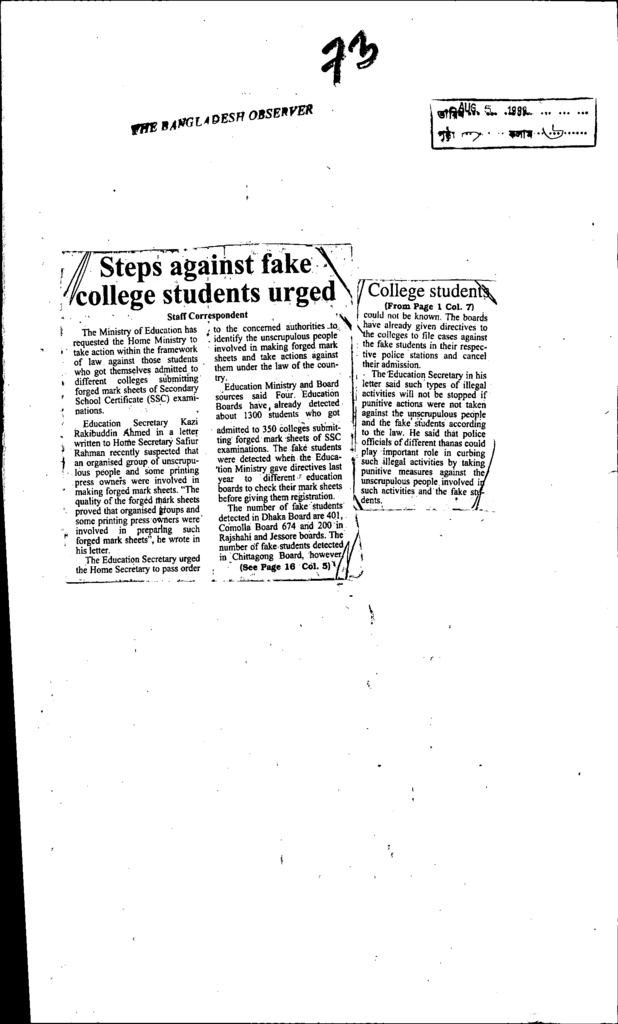 Steps against fake college students urged Published on Newspaper The Bangladesh Observer Category Professional Education Professional Education Others Download