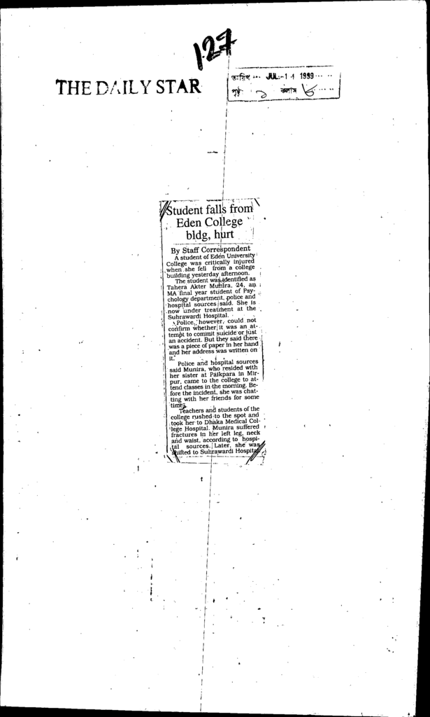 Student falls from eden college bldg hurt Published on Newspaper The Daily Star Category Professional Education Professional Education Others Download