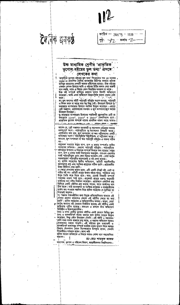 উচ্চ মাধ্যমিক শ্রেণীর প্রাকৃতিক ভূগোল বইয়ের ভুল তথ্য’ প্রসঙ্গে লেখকের কথা Published on Newspaper দৈনিক জনকণ্ঠ Category Professional Education Professional Education Others Download