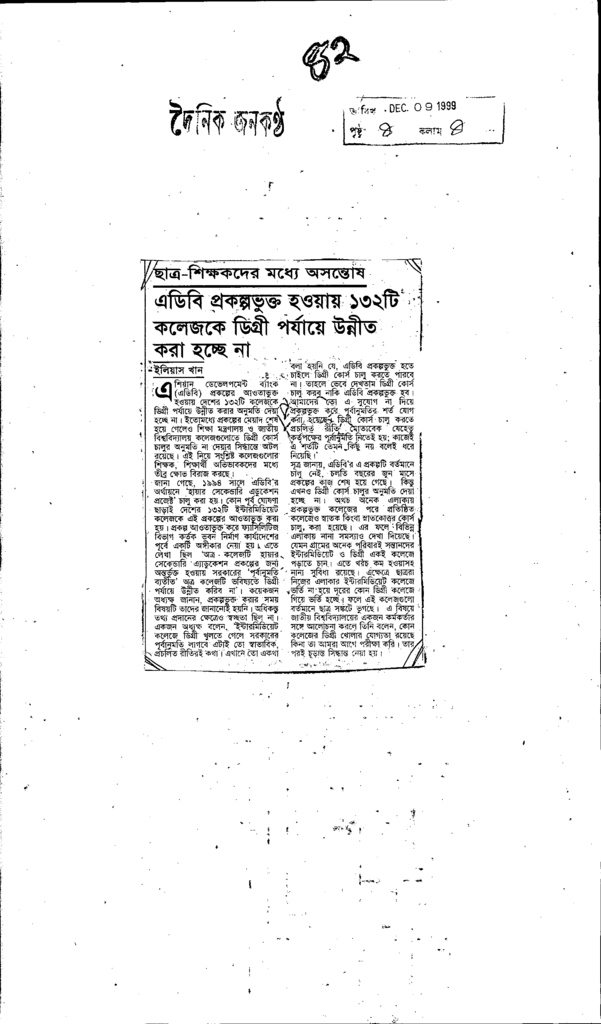 এডিবি প্রকল্পভুক্ত হওয়ায় ১৩২ টি কলেজকে ডিগ্রী পর্যায়ে উন্নীত করা হচ্ছে না Published on Newspaper দৈনিক জনকণ্ঠ Category Professional Education Professional Education Others Download