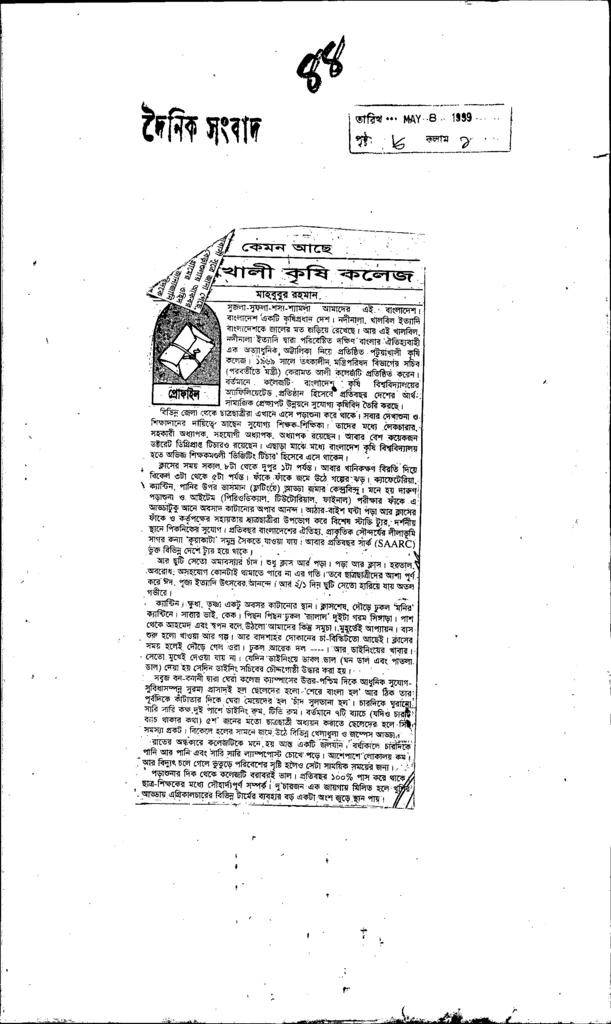 খালী কৃষি কলেজ Published on Newspaper দৈনিক সংবাদ Category Professional Education Professional Education Others Download