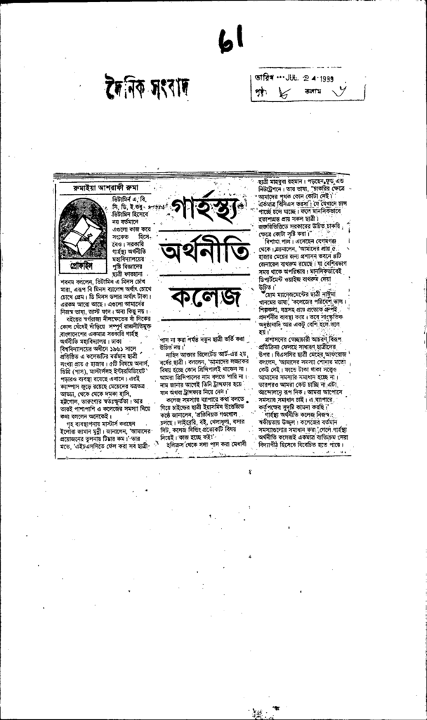 গার্হস্থ্য অর্থনীতি কলেজ Published on Newspaper দৈনিক সংবাদ Category Professional Education Professional Education Others Download