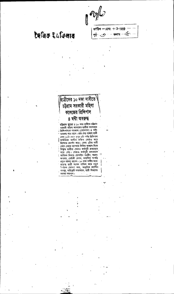 ছাত্রীদের ১০ দফা দাবীতে চট্টগ্রাম সরকারী মহিলা কলেজের প্রিন্সিপিাল ৪ ঘন্টা অবরুদ্ধ Published on Newspaper দৈনিক ইনকিলাব Category Professional Education Professional Education Others Download